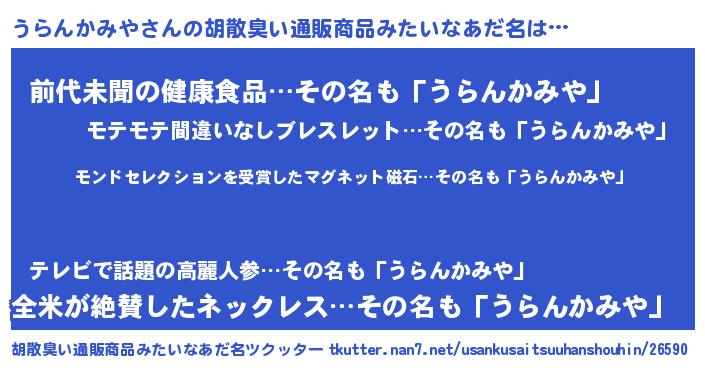 | 肩書あだ名 | 『うらんかみや教授』『うらんかみや先生』 |
