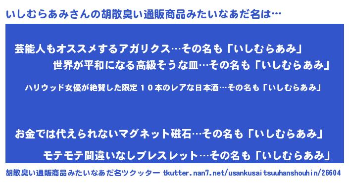 | 意味不明あだ名 | 『住所不定無職いしむらあみ(43歳)』 |