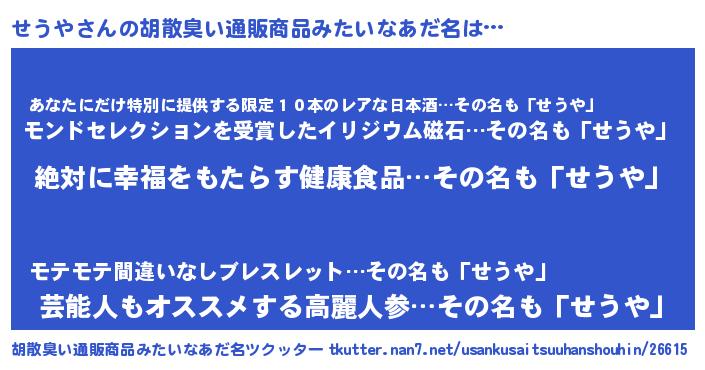 せうやさんの胡散臭い通販商品みたいなあだ名をツクッター!