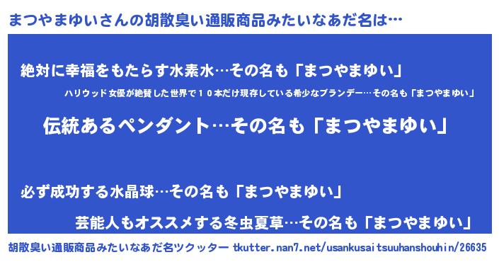 | ヘコむあだ名 | 『まつっちょ』『まつやまゆい(苦笑)』 |