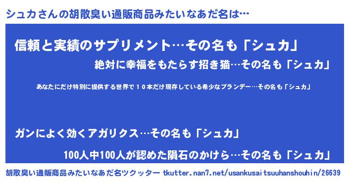 | ヘコむあだ名 | 『シュぷりん』『シュカ(笑)』 |