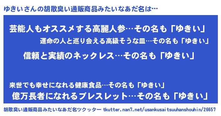 | 意味不明あだ名 | 『とにかく怪しいゆきい』『自称ゆきい』 |