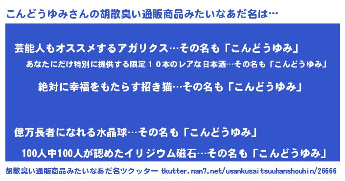 | ヘコむあだ名 | 『こんどうゆみ(小並感)』『こんふぇ~』 |