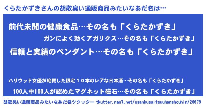 | 意味不明あだ名 | 『とにかく怪しいくらたかずき』 |