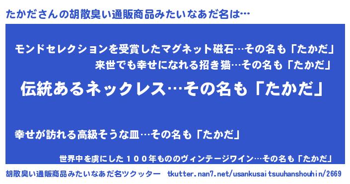 | ヘコむあだ名 | 『たかっ子』『たかだ(遠い目)』 |