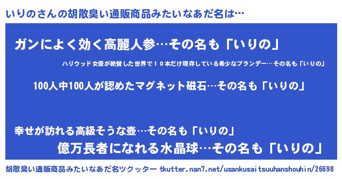 | 意味不明あだ名 | 『眠気覚ましガムいりの味』『自称いりの』 |
