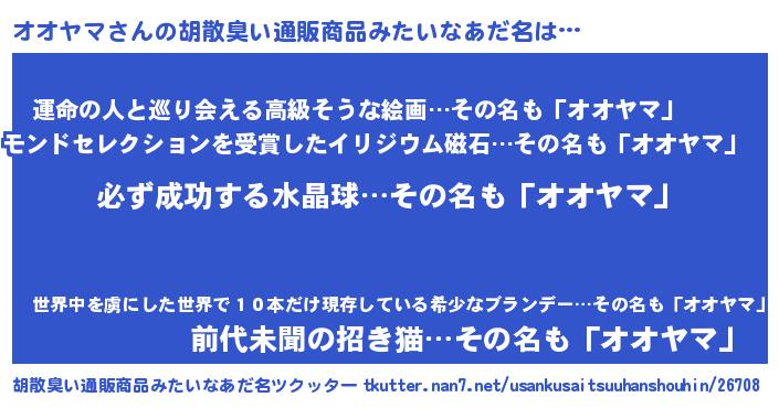 | 男性向けラノベタイトル風あだ名 | 『オオヤマの憂鬱』 |