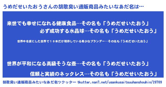 | ヒーロー風カッコイイあだ名 | 『仮面ウメダー』『ネオウメダセイタオウ』 |
