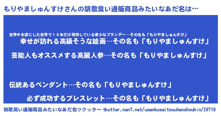 | 欧米人風あだ名 | 『アンジェラ・もりやましゅんすけ』 |