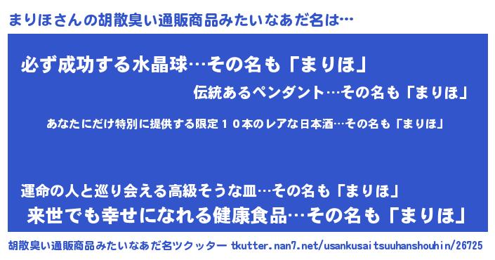 | 男性向けラノベタイトル風あだ名 | 『この素晴らしい世界にまりほを!』 |