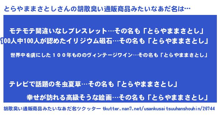 | 意味不明あだ名 | 『住所不定無職とらやままさとし(11歳)』 |