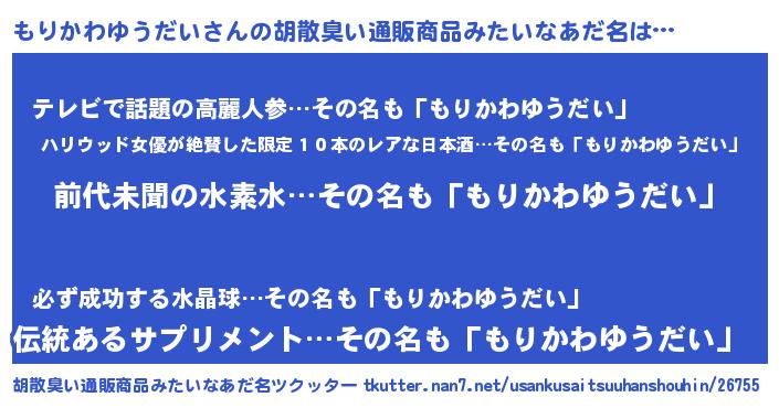 | 意味不明あだ名 | 『永久保存もりかわゆうだい』 |