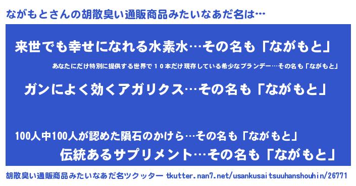 | 意味不明あだ名 | 『自称ながもと』『永久保存ながもと』 |