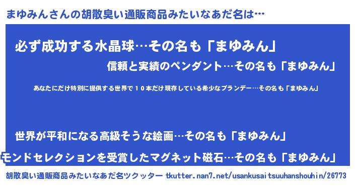 まゆみんさんの胡散臭い通販商品みたいなあだ名をツクッター!