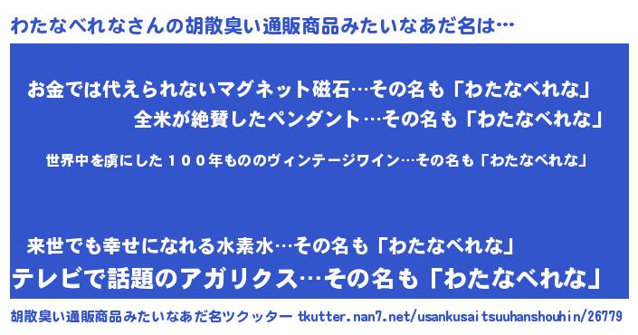 | ヘコむあだ名 | 『わたを』『わたなべれな(笑)』 |