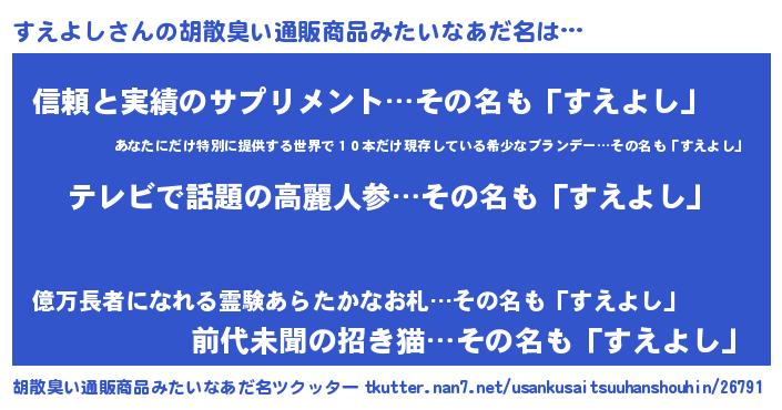 | 欧米人風あだ名 | 『アンジェラ・すえよし』 |