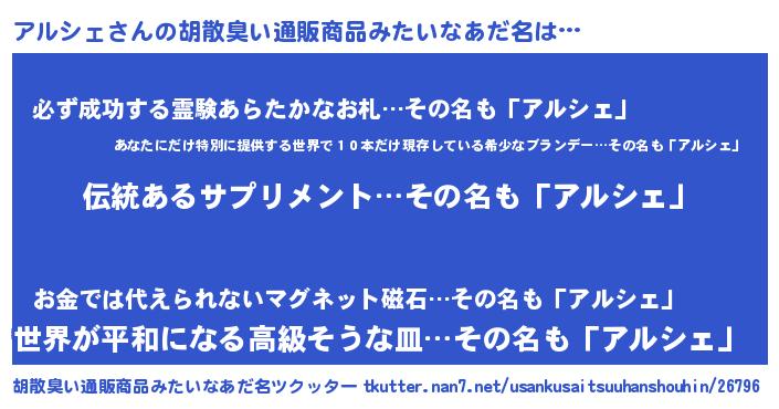 | 意味不明あだ名 | 『とにかく怪しいアルシェ』 |