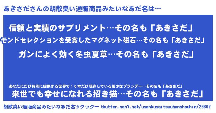 | ヘコむあだ名 | 『あきっちょ』『あきさだ(笑)』 |