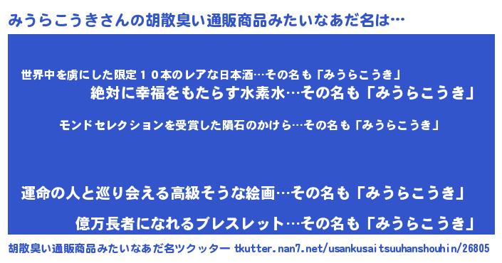 | ヘコむあだ名 | 『みうっふぃ~』『みうらこうき(爆)』 |