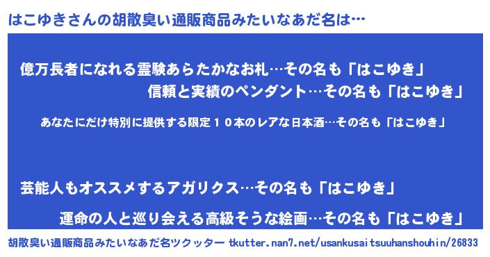 | 意味不明あだ名 | 『住所不定無職はこゆき(56歳)』 |