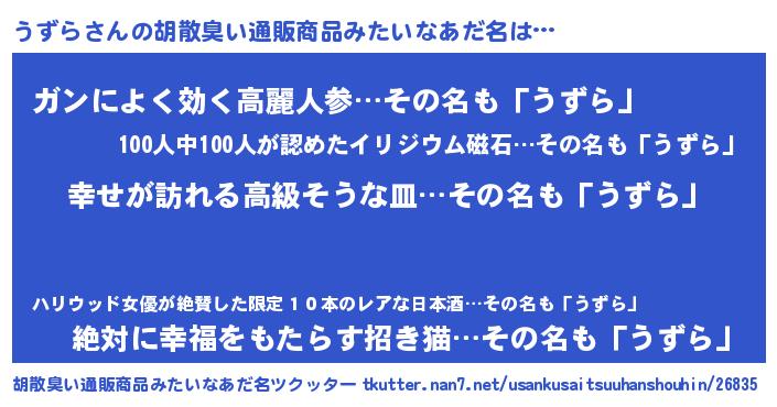 | ヒーロー風カッコイイあだ名 | 『ウルトラうずらマン』『ネオウズラ』 |