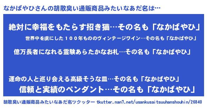 | ヘコむあだ名 | 『なかっふぃ~』『なかばやひ(笑)』 |