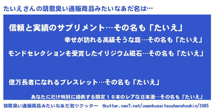 たいえさんの胡散臭い通販商品みたいなあだ名をツクッター!