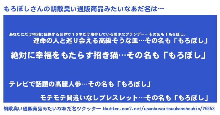| ヘコむあだ名 | 『もろぼし(笑)』『もろもー』『豆乳』 |