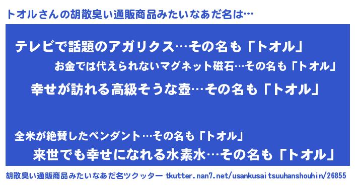 | 意味不明あだ名 | 『トオルフォーエバー』『自称トオル』 |