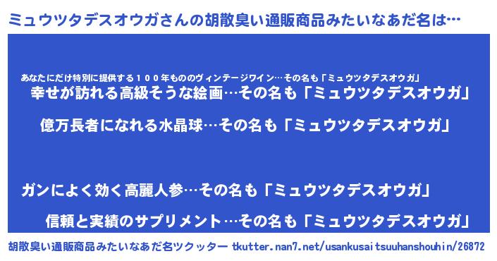 | ヒーロー風カッコイイあだ名 | 『スーパーミュウツタデスオウガ』 |