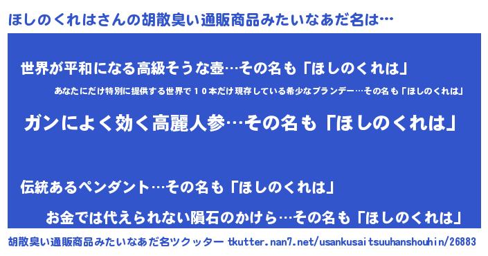 ほしのくれはさんの胡散臭い通販商品みたいなあだ名をツクッター!