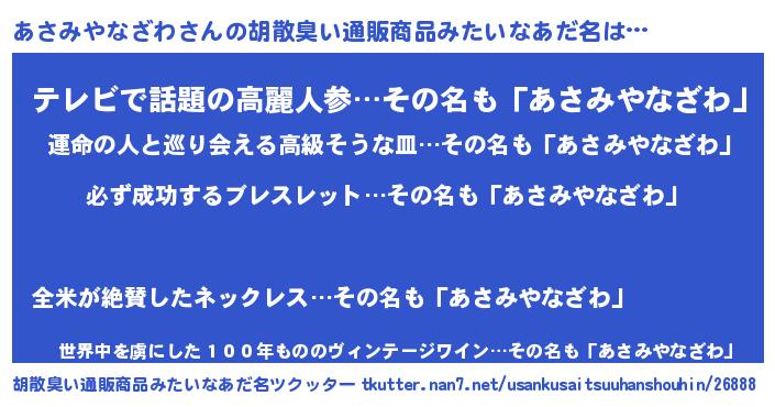 | 男性向けラノベタイトル風あだ名 | 『あさみやなざわの憂鬱』 |