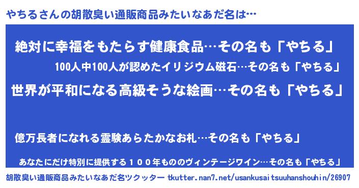 | ヘコむあだ名 | 『豆乳』『やちる(爆)』『やちにー』 |