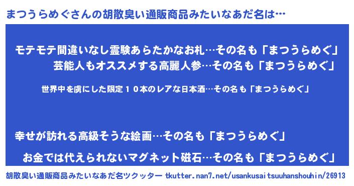 | 肩書あだ名 | 『まつうらめぐ教官』『まつうらめぐ教授』 |