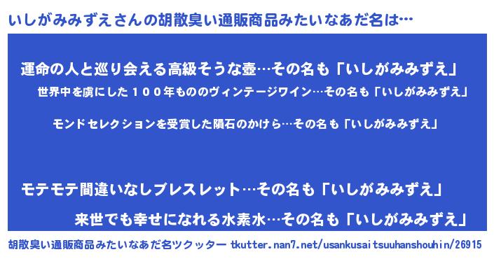 | ヒーロー風カッコイイあだ名 | 『慈愛の使者いしがみみずえ』 |