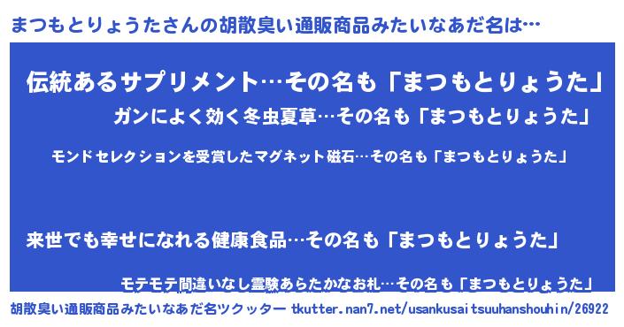 | 意味不明あだ名 | 『眠気覚ましガムまつもとりょうた味』 |