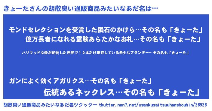| ヘコむあだ名 | 『きょぷりん』『きょにー』『牛乳』 |