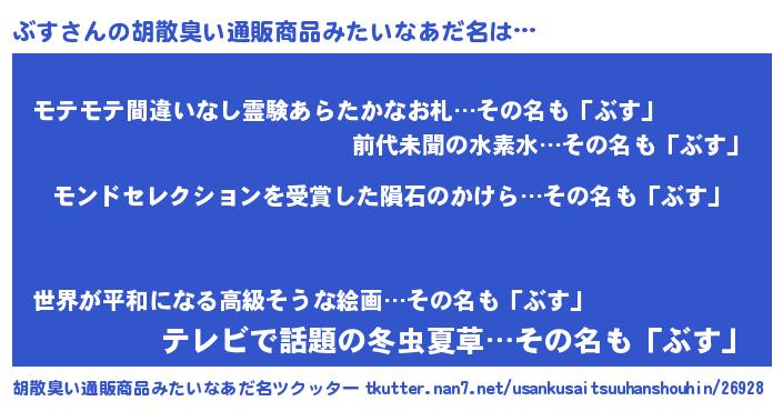 | ヒーロー風カッコイイあだ名 | 『天空の使者ぶす』『スーパーブス』 |