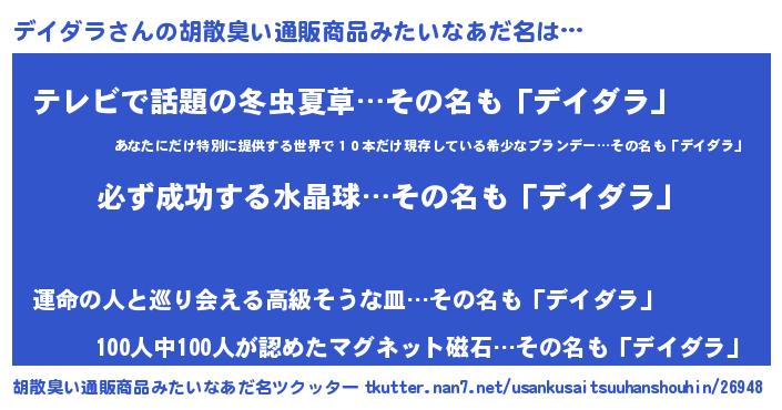 | ヘコむあだ名 | 『デイにゅー』『豆乳』『デイお』 |