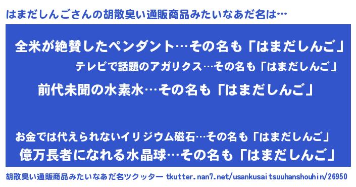 | ヘコむあだ名 | 『はまだしんご(震え声)』『はまぷりん』 |