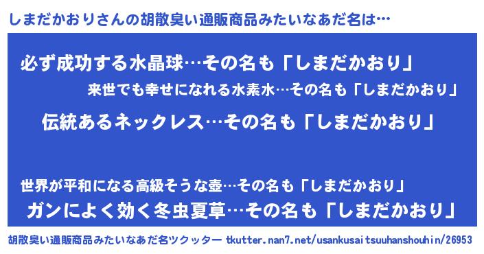 | 意味不明あだ名 | 『とにかく怪しいしまだかおり』 |