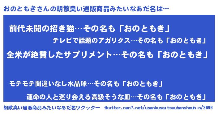 | ヘコむあだ名 | 『おのお』『おのともき(笑)』 |