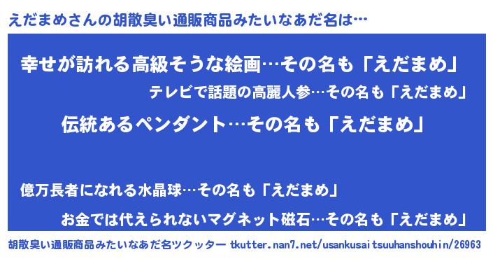 | 意味不明あだ名 | 『とにかく怪しいえだまめ』 |