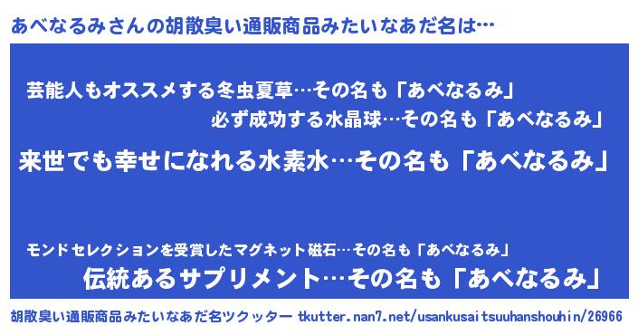 | ヘコむあだ名 | 『あべなるみ(遠い目)』『あべっ子』 |