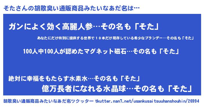 | 男性向けラノベタイトル風あだ名 | 『緋弾のソタ』『はたらくそたさま!』 |