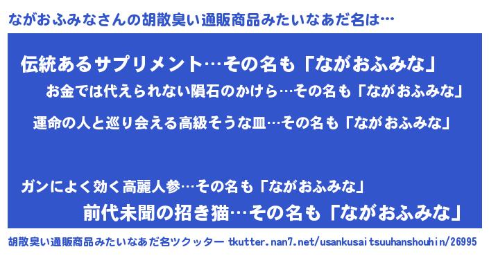 | 欧米人風あだ名 | 『ながおふみなクリステル』 |