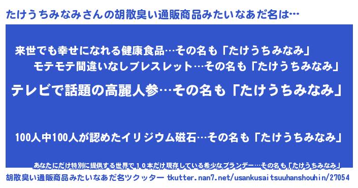 | 男性向けラノベタイトル風あだ名 | 『Re:たけうちみなみから始める異世界生活』 |