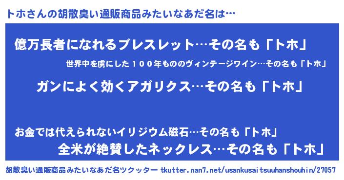 | ヘコむあだ名 | 『トホにゅー』『トホっちょ』 |