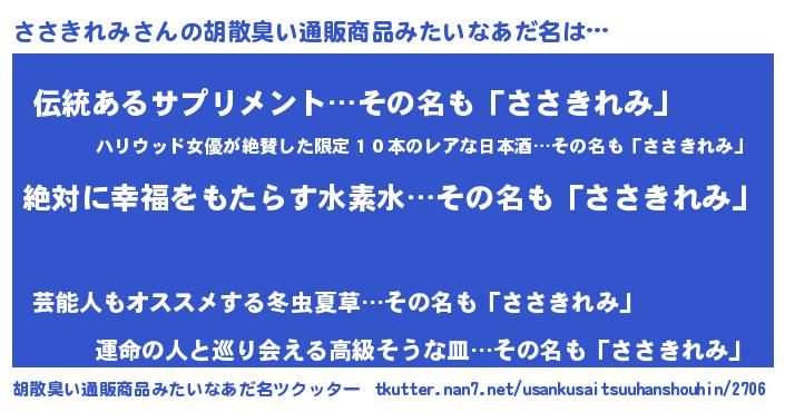 | ヘコむあだ名 | 『ささきれみ(震え声)』『ささお』 |