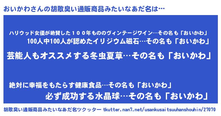 | ヘコむあだ名 | 『おいっふぃ~』『おいかわ(小並感)』 |